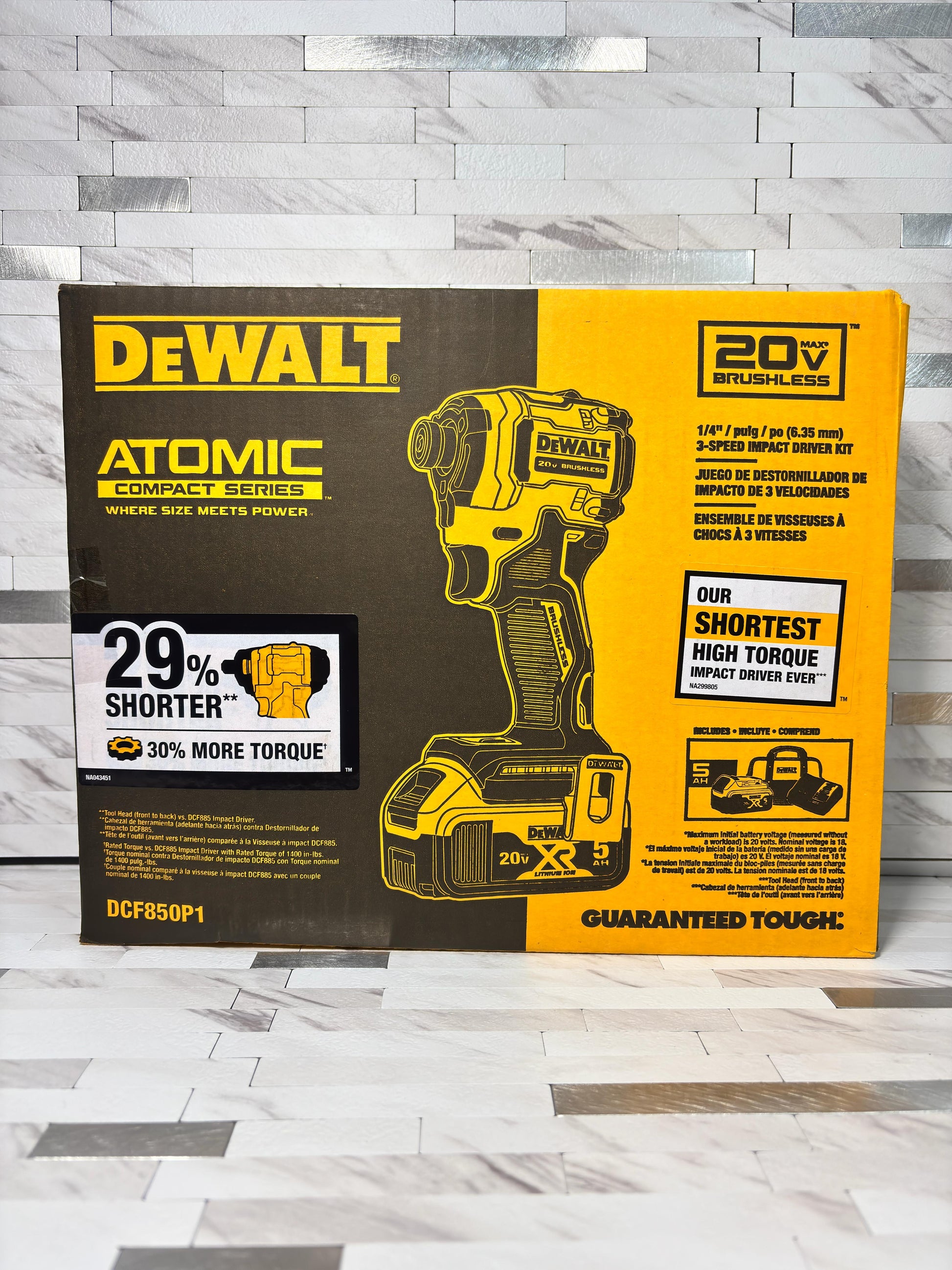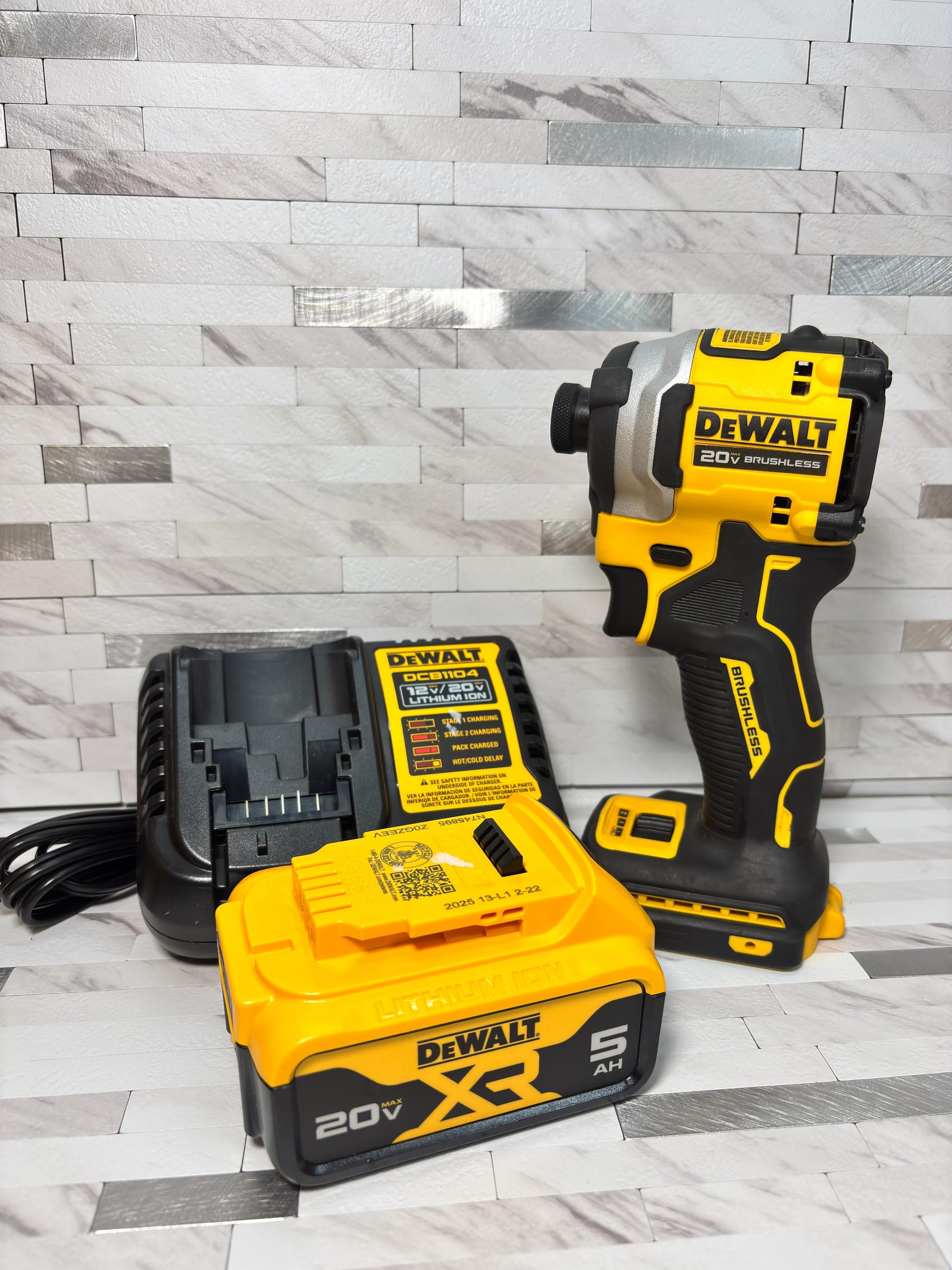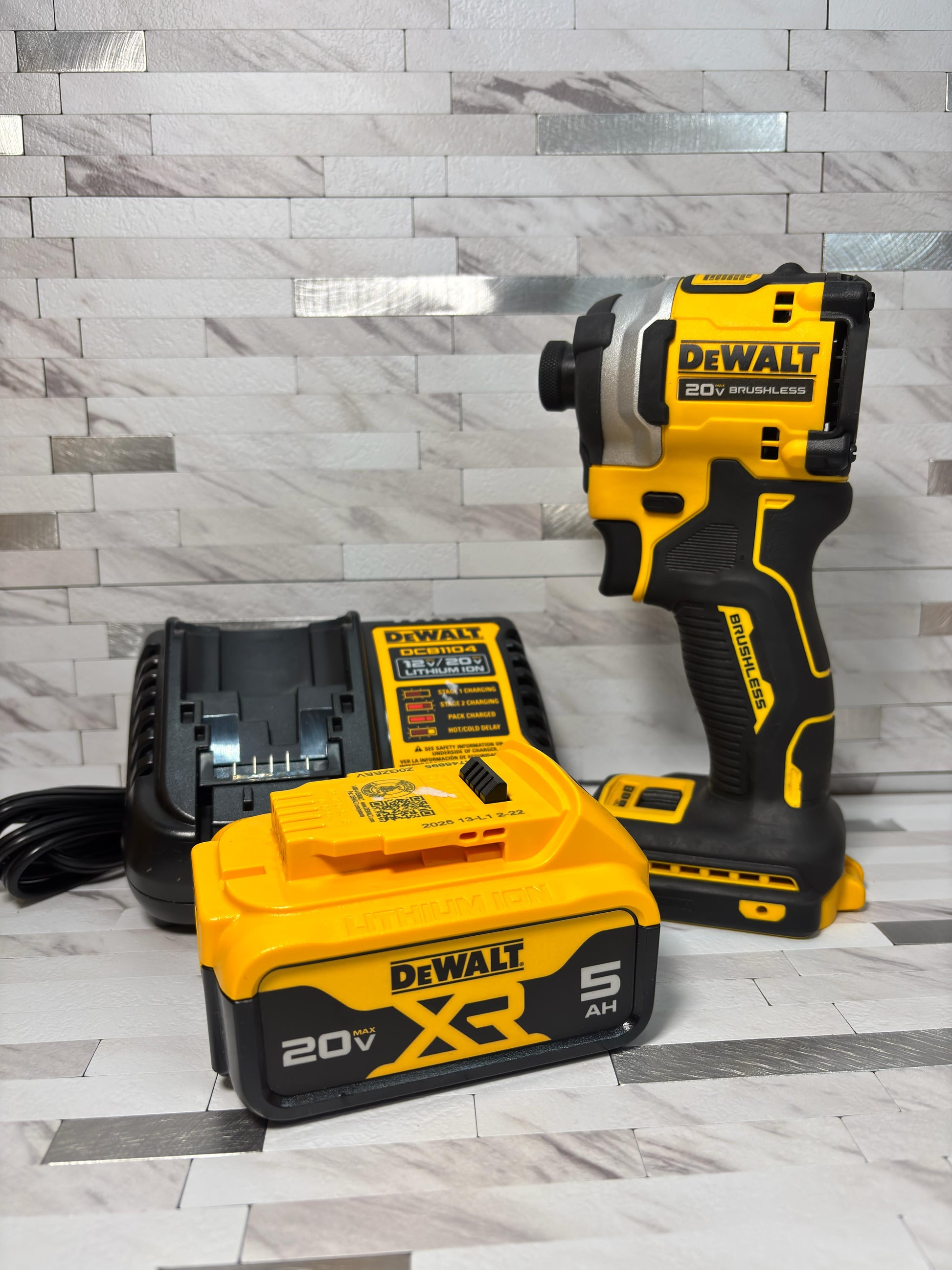 Dewalt Atomic 20V MAX Lithium-Ion Cordless 1/4 in. Brushless Impact Driver Kit, 5 Ah Battery, Charger, and Bag