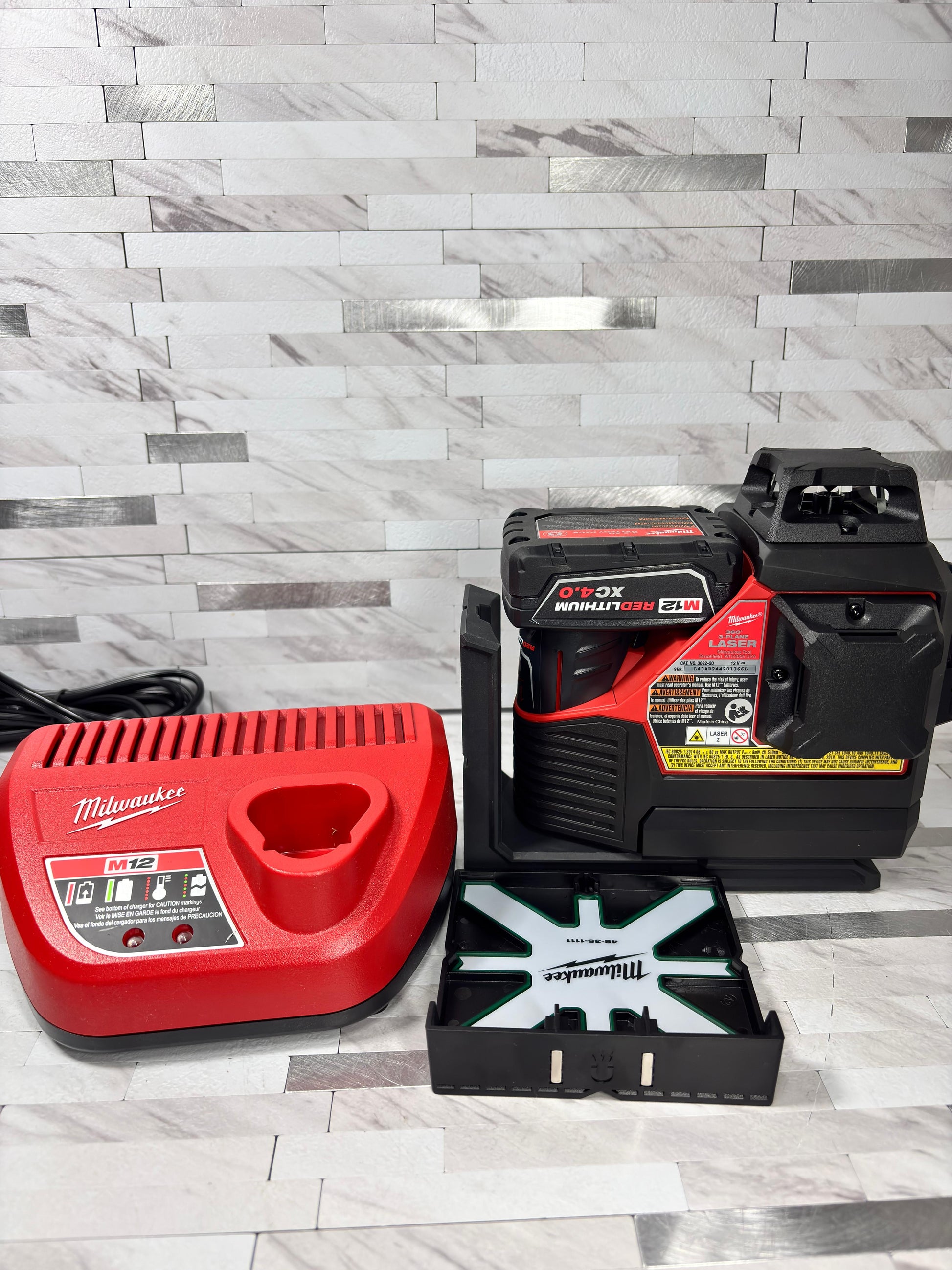 M12 12-Volt Lithium-Ion Cordless Green 250 ft. 3-Plane Laser Level Kit with One 4.0 Ah Battery, Charger and Case